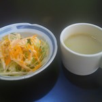 ミラン レストラン - 右…来店時に運ばれてきたスープ かき混ぜないと後でしょっぱい 左…サラダ